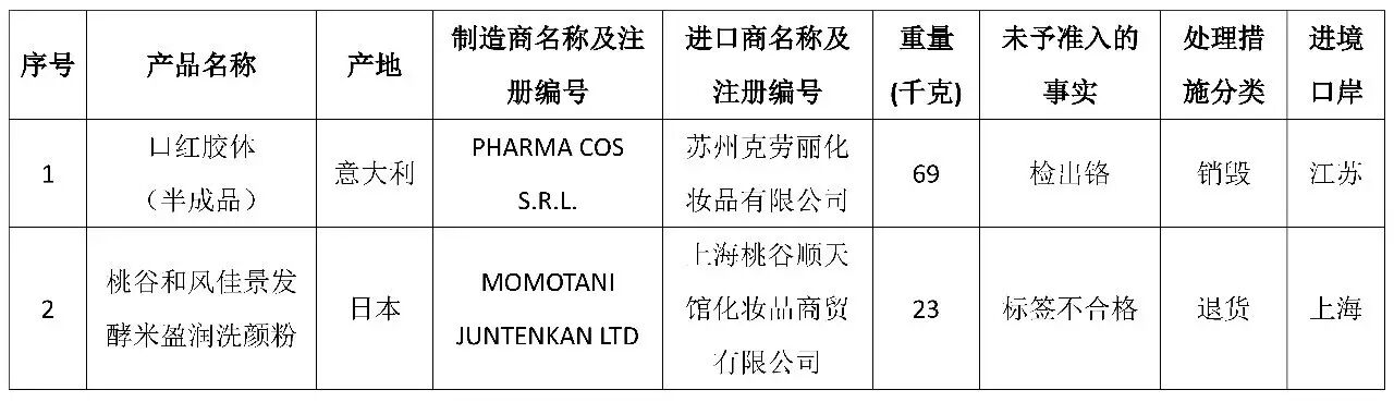 近期,,其中涉及的化妆品产品共2批次。