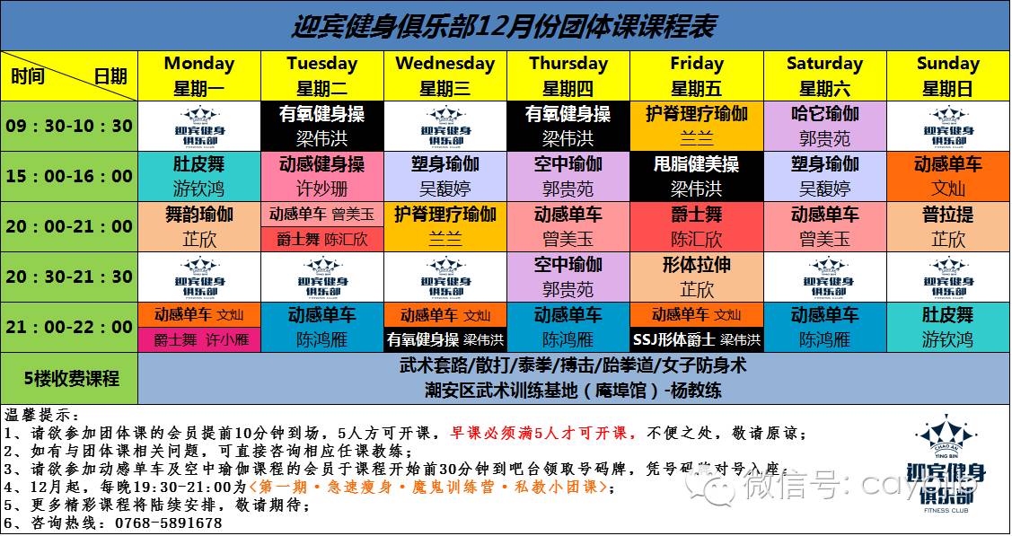 ①TIPS:12月起,部分团体课程做了细微调整,课程安排及开课时间请认准↑上方的12月团体课表。