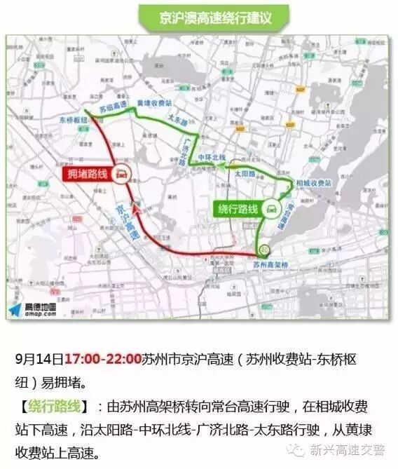 9月14日14:00-19:00、9月15日9:00-12:00为出行高峰,长三角区域高速交通压力增大,上海、杭州、苏州周边高速以上海绕城、杭州绕城、常台、沈海高速(苏通大桥)拥堵较为突出。