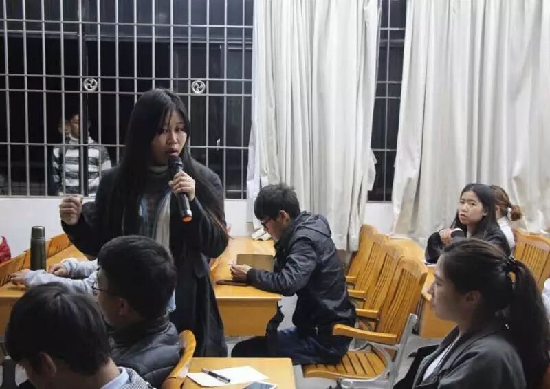 7:30交流会正式开始,纪燕淳首先做了自我介绍,简述了她自己在大学的奋斗历程。她说要有像青苔一样的精神去考研,像青苔一样不断寻找知识和养分,保持平常心,有着谦虚的学习态度,永不放弃。然后作为师姐——她以自身的考研经历向师弟师妹们分享了宝贵的考研经验,对于择校,她首先提醒同学们要关注网站发布的信息并及时了解相关学校的基本情况,随后结合自身情况锁定院校进行定点规划,对于如何备考,师姐分别从专业、英语、。专业复习上,要依据考试大纲;英语方面,重在题目练习,多动脑,勤动手;,依据大纲也很重要,同时注意答题时的条理性。