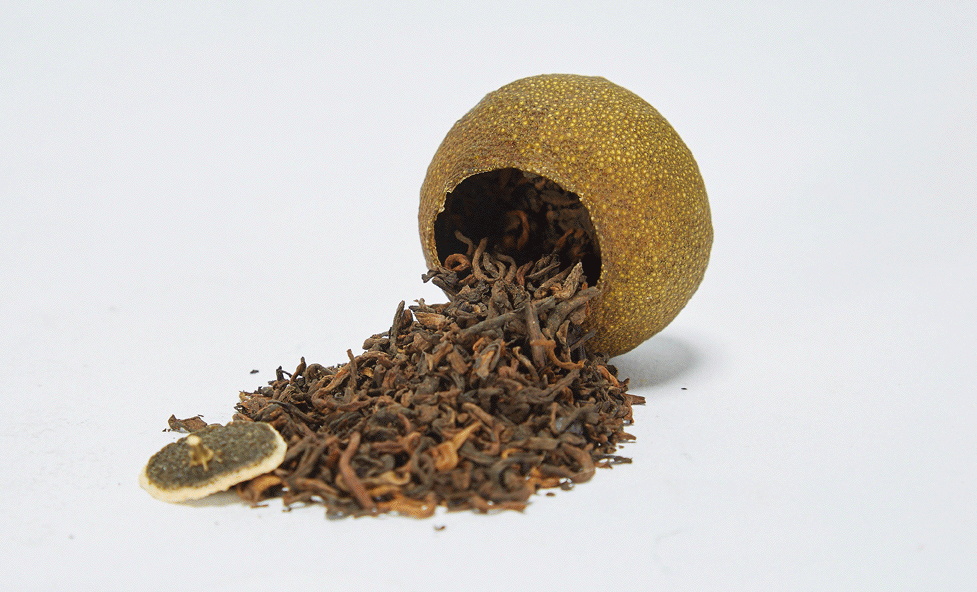 陈年普洱加上清新的青柑,陶壶里随沸水翻腾,深处的果香配上袅袅的陈香,室内弥漫着雨后柑橘的酸香。轻轻啜饮,茶果的甘甜渗入喉底,记忆随之走向往日,旧时的青葱渐渐浮上心头。