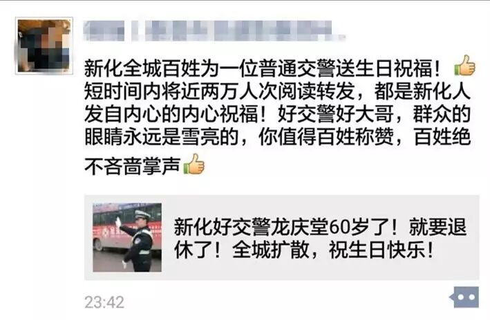 新化全城百姓为一位普通交警点赞送祝福!惊动了省电视台!