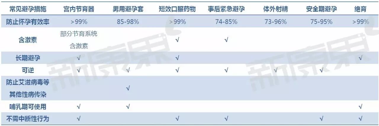正常情况下不采取任何避孕措施有规律性生活的女性,一年内怀孕的概率为85%。而采用避孕措施之后,怀孕的几率是多少呢?下面整理列出几种常规的避孕方法和特点,方便大家来比较。可以看出,并没有百分百有效的避孕方法。如果无生育意愿,女性同胞们应根据自己的需求,选择效率高、安全性好的避孕措施。