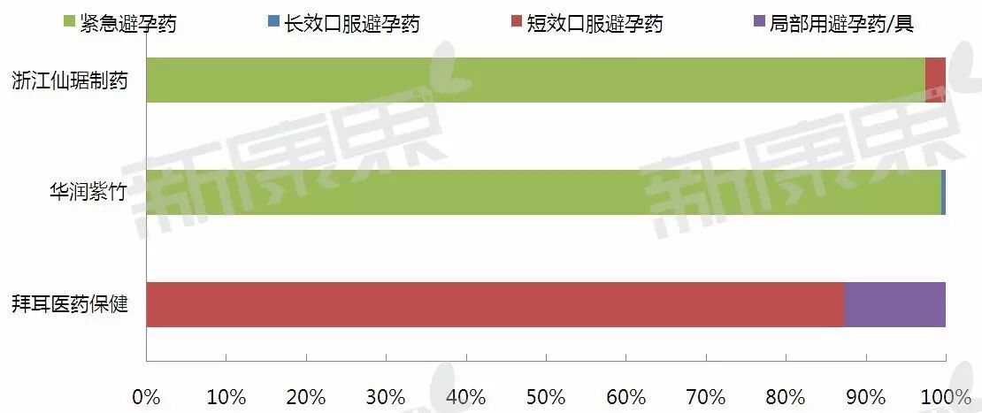 避孕药国内市场龙头企业有拜耳医药保健、华润紫竹、浙江仙琚等。上述三个企业避孕药布局各有不同。拜耳重点布局短效口服避孕药及局部用避孕药具(宫内节育系统)两部分市场,华润紫竹和浙江仙琚则主攻紧急避孕药市场,短效口服避孕药仅占小部分销售额份额。