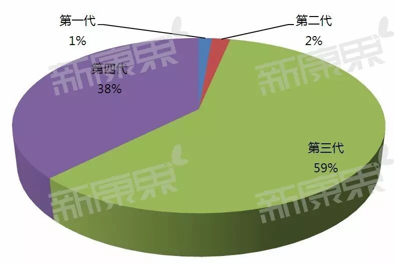 短效口服避孕药2015年销售总额为7.8亿,预计2016年降超过10亿,增幅达到20%以上。四代药物市场由大到小分别为:第三代>第四代>第二代>第一代。一、二代价格偏低,避孕效率不及三、四代,副作用大,市场已逐渐被三、四代取代。