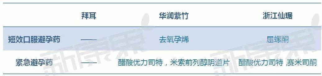 表3 拜耳、华润紫竹、浙江仙琚国内在注册的避孕药新药品种