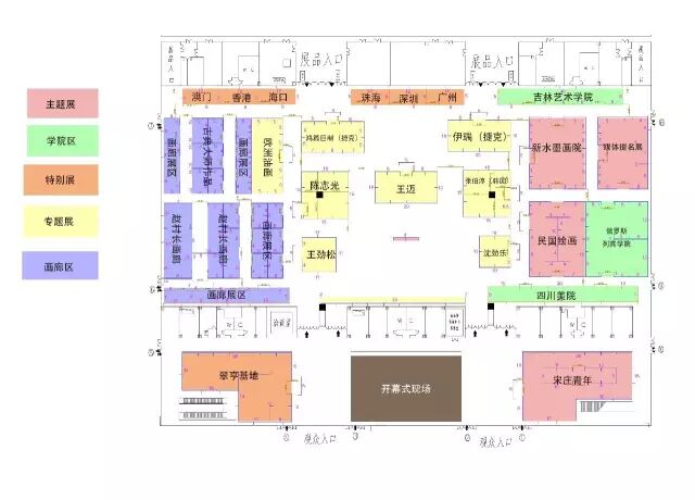 设置主题展展区、专题展展区、特别展展区、院校展区、特邀画廊展区、文化活动六大板块主题展览,包括油画、版画、雕塑、装置、影像等近3000件作品参展,韩国、捷克作为主宾国,带来的本国国家级艺术家作品将首次亮相中山。