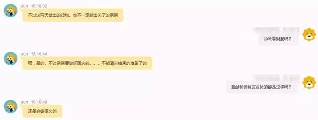 对此,联系了天猫国际提供物流服务的菜鸟网络相关负责人,获悉,目前与菜鸟合作的商家有三种发货方式,分别是直邮、保税备货以及海外集货,其中前两种方式并不会受此次国庆假期的影响。但海外仓集货服务需要中韩干线运输,因此在国内口岸清关可能收到假期影响,时效无法保证。建议商家和消费者选择前两种清关方式。