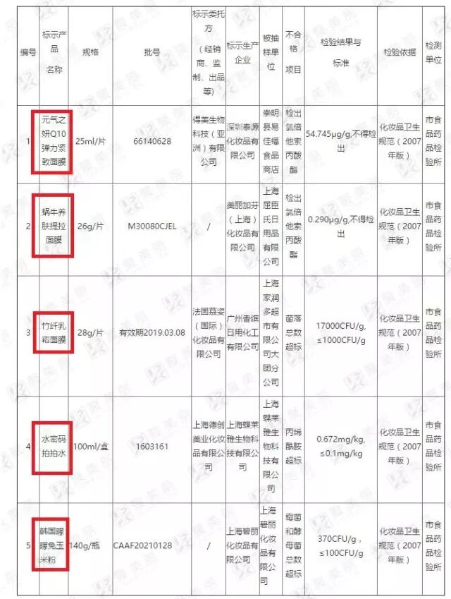 其中,在上海屈臣氏日用品有限公司抽检出,由美丽加芬(上海)化妆品有限公司生产的一款蜗牛养肤提拉面膜,里面含有氯倍他索丙酸酯(激素)。