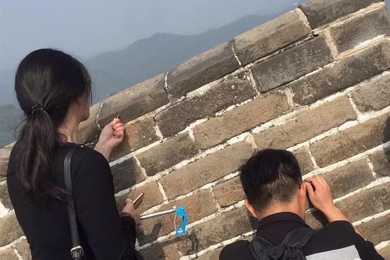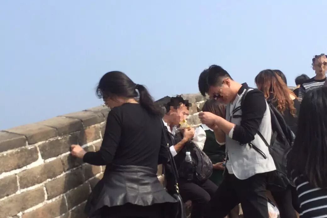 全广州都怒了!一对情侣用钥匙喺长城上面刻名,游客去制止都唔停手!