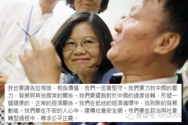当选至上台后多次承诺,她的两岸政策是“可预测、不挑衅、维持现状”。而公开信传出的讯息却是“要力抗、要摆脱”,不可能“维持现状”。公开信也没有说明台湾要怎么抵抗、靠什么抵抗,抵抗会让台湾得到什么、牺牲什么;台湾又凭什么去发展与其他国家的关系。