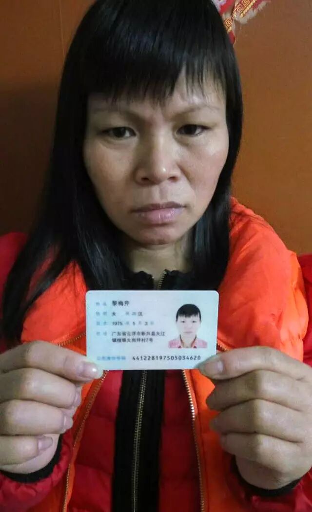 黎梅芹,今年41岁,广东省云浮市新兴县大江镇梭榔大岗坪村人。