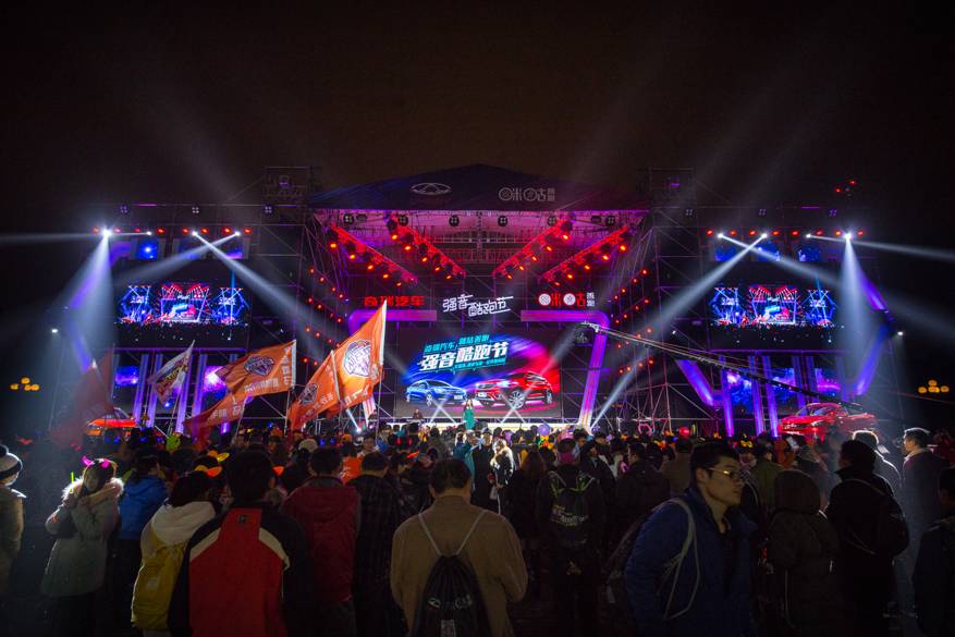 当晚第十万名车主交车仪式结束后,奇瑞 “强音酷跑节” 热辣开跑,由中国好声音总冠军李琦、《中国新歌声》人气学员刘雪婧助阵的“好声音”火力全开、引爆星城不眠之夜。除了音乐传递正能量, 5KM荧光夜跑更是吸睛:由艾瑞泽5、瑞虎7领衔,近5000名跑步爱好者、高颜值的美女跑团、流行乐队,所到之处掀起“全城酷跑”热潮。