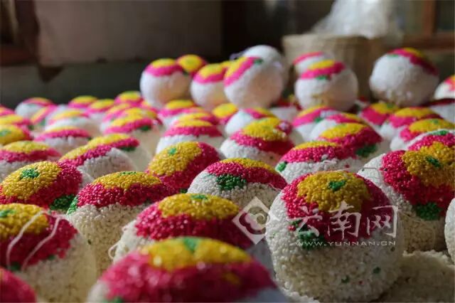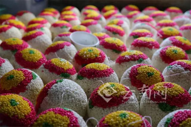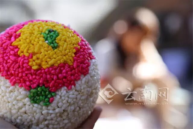 为了好看,还可以在米花上染上食色,做上些图案,或做上几个祝福的字,这样更受大家的欢迎。老孙说,近几年,他家每年都要做2500多市斤米的圆糖,一年做的圆糖大大小小3万多个,最大的比钵头还要大,最小的也有拳头那么大。