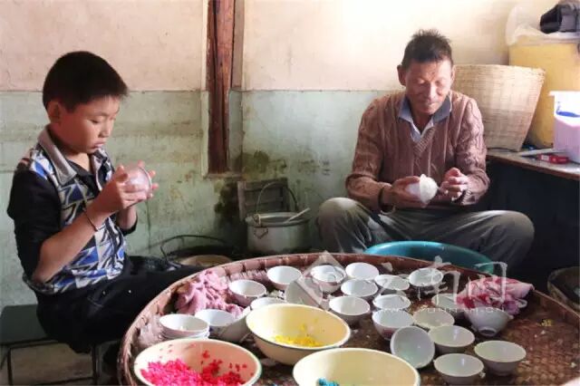 在弥渡,制作圆糖已经有上百年的历史了,其中吴家营村制作的圆糖在弥渡最负盛名。据老孙介绍,吴家营自古以来就有做米花糖的传统,最多时全村少说也有50多家做米花糖,春节前的一个多月更是全村家家户户都做圆糖。他的父亲就做米花糖,他的爷爷也做,做米花糖是祖传的老手艺。
