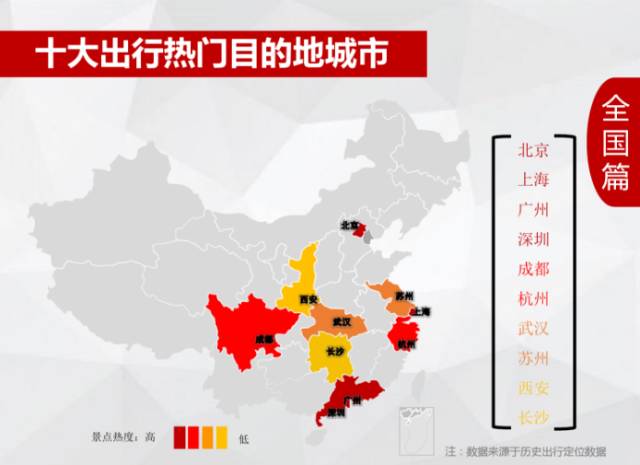 阿里数据显示,杭州西湖、北京颐和园和成都的宽窄巷子会成为人数最多的景点,会出现人山人海的场面。出行数据还显示,在成都、西安、杭州等旅游城市。