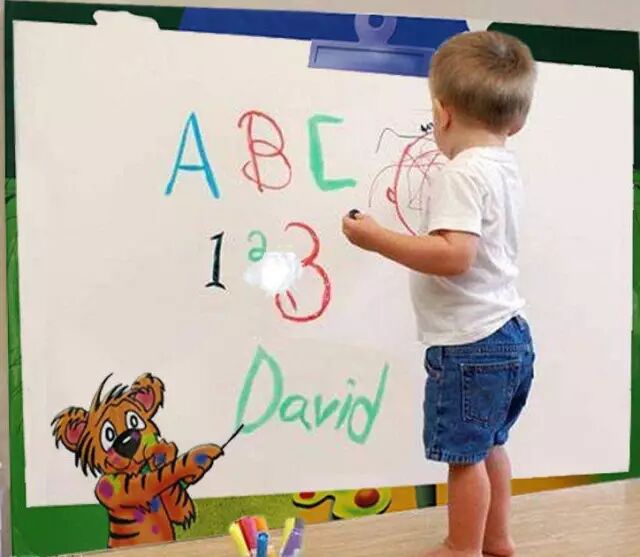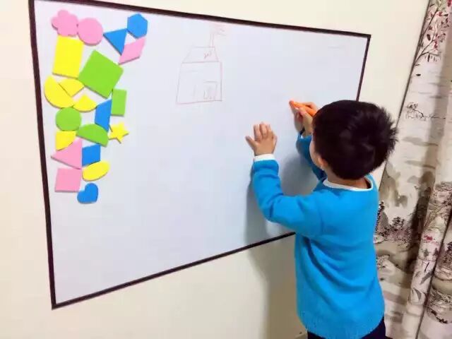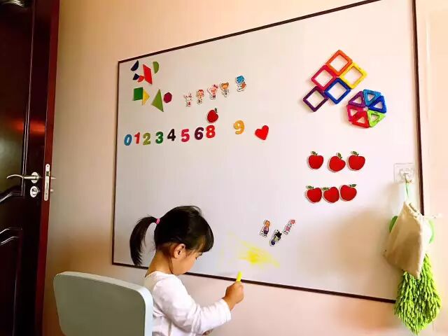 孩子长大后学数字,学字母,也很方便,用涂鸦墙也有助于孩子提前适应课堂的学习模式,学会注意专注的跟着主讲人和黑板走。因此宝宝1岁能够站稳,就可以开始在涂鸦墙上开始涂鸦。
