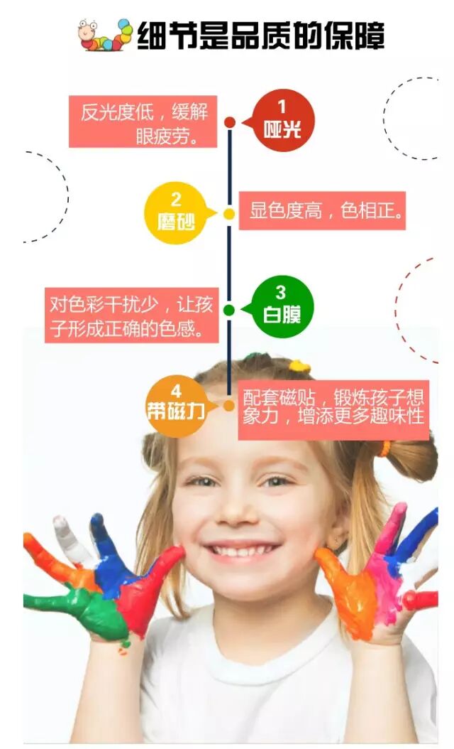 4、根据孩子视觉发展规律科学设计,颜色更纯正,涂鸦效果更出众