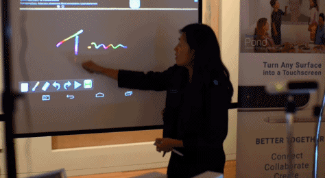 Touchjet Pond 可将任何平面变成触摸屏,让你直接将投射的图像完全变成触控屏,而且最大可投射 80 寸的大屏画面,不仅能够满足绚丽生动的画面需求,而且由于是投影,所以会保护眼睛。。。