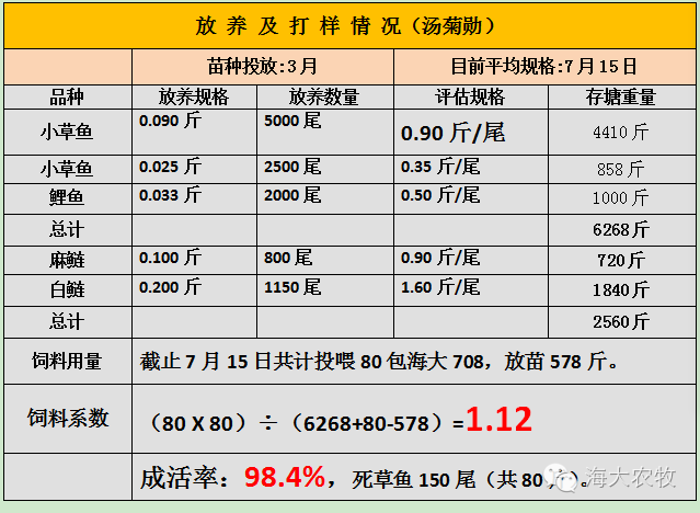 功夫不负有心人,截至7月底,南大片区预付款同比增长20%,全年预计销量增长1500吨,海联科完成48万,同比去年增量超71%!整个5、6月份,莫自记牵头组织养殖户技术交流会、塘头会共计15场以上,服务养殖户600人次以上!