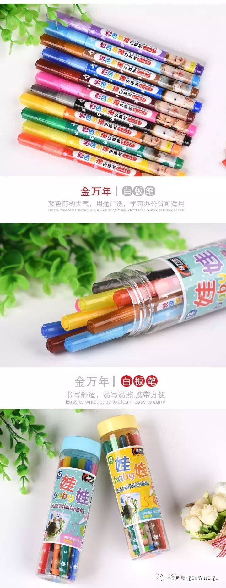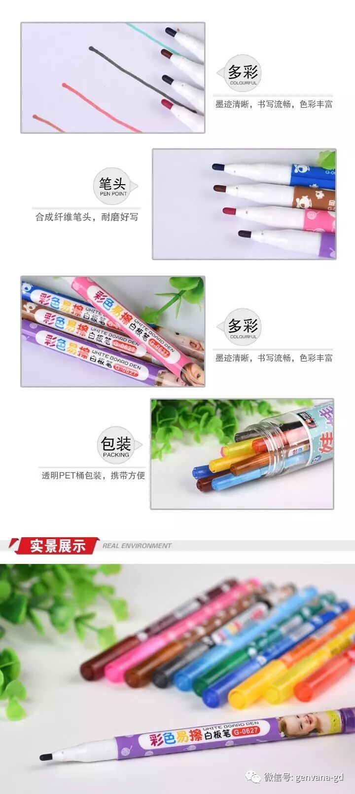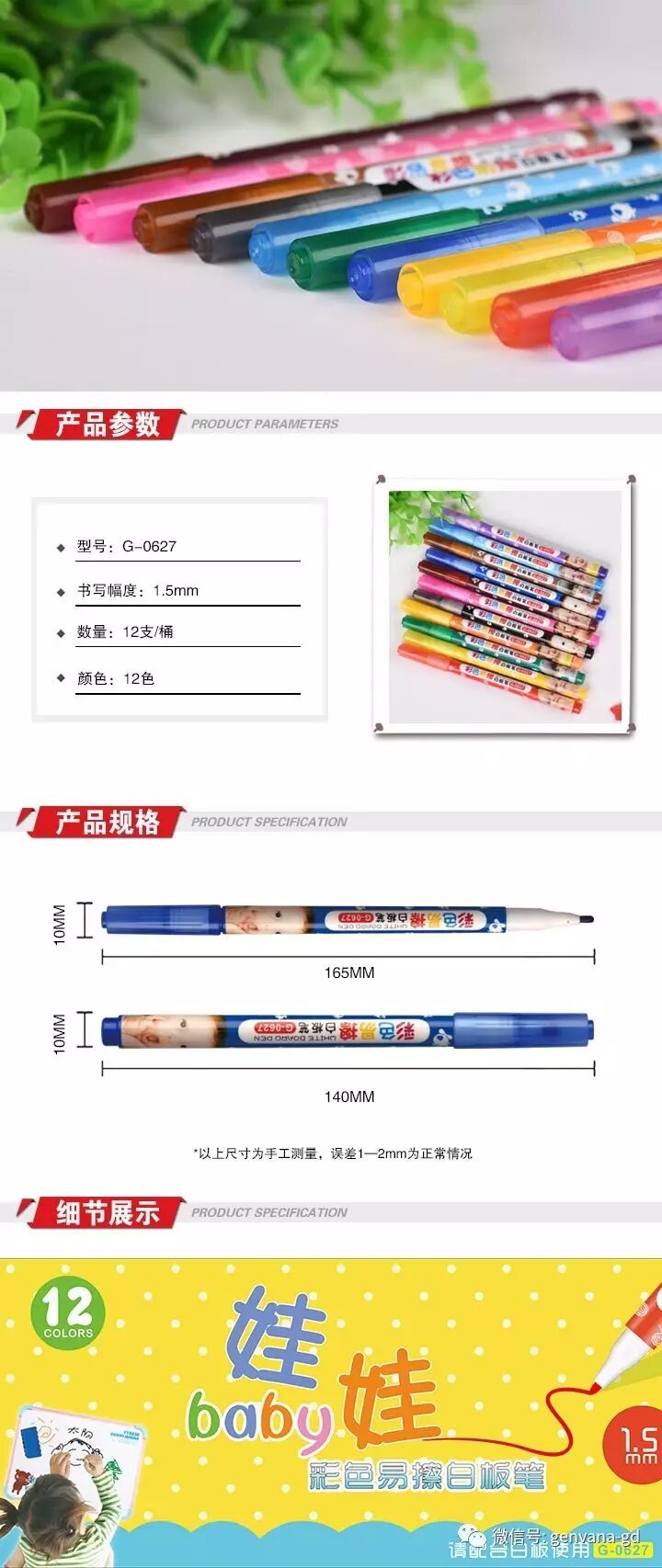 G-0627单头绘画涂鸦彩色笔12色筒装可擦白板笔