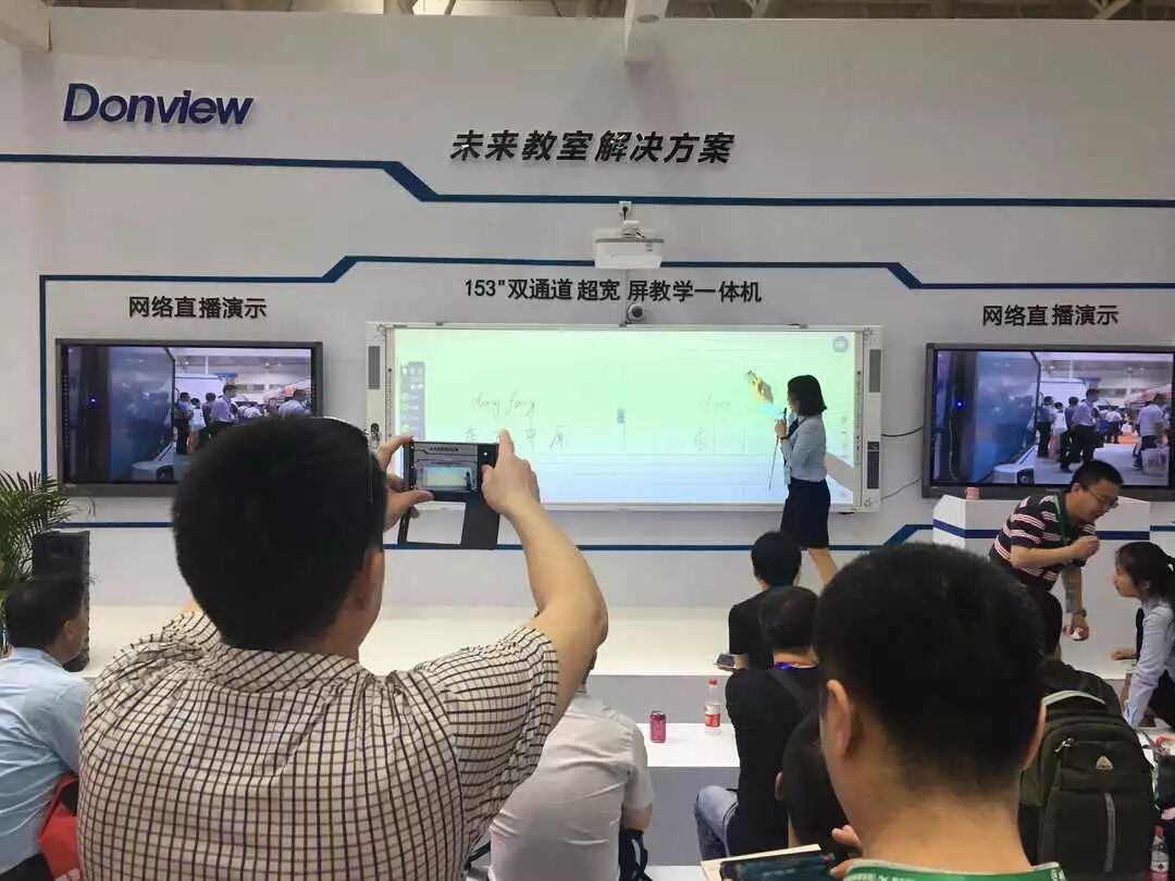 "153"双道道超宽屏教学一体机+16:6的激光投影机未来教室解决方案"已然成为这届普教展的焦点。在众多专业人事和教育工作者的围观品鉴下,更经历住了无数的摄像机、手机的轮番拍摄,落落大方地把自己所特有的功能完美地呈现在观众面前。最终留下的是广大教育专业集成人士和教育设计工作者对未来教室、智慧教室设计的无限遐想!