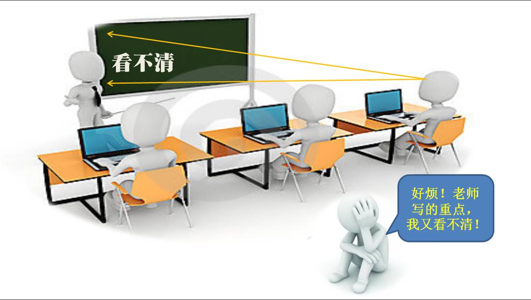 当坐在教室左右两边的同学抱怨观看黑板的另一边吃力,甚至看不清时,我们该怎么办?