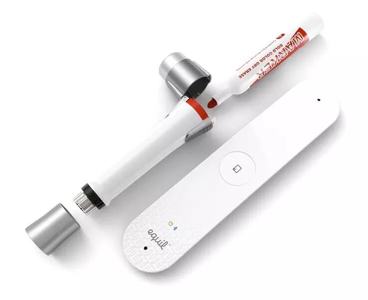 使用方法简单,打开接收器的电源放到白板边缘,然后打开智能手机端的app,用装有记号笔的专用笔在白板上写字就可以了。信息将实时同步到各个授信端。这种信息实时共享设备最多同时可以连接十台设备。