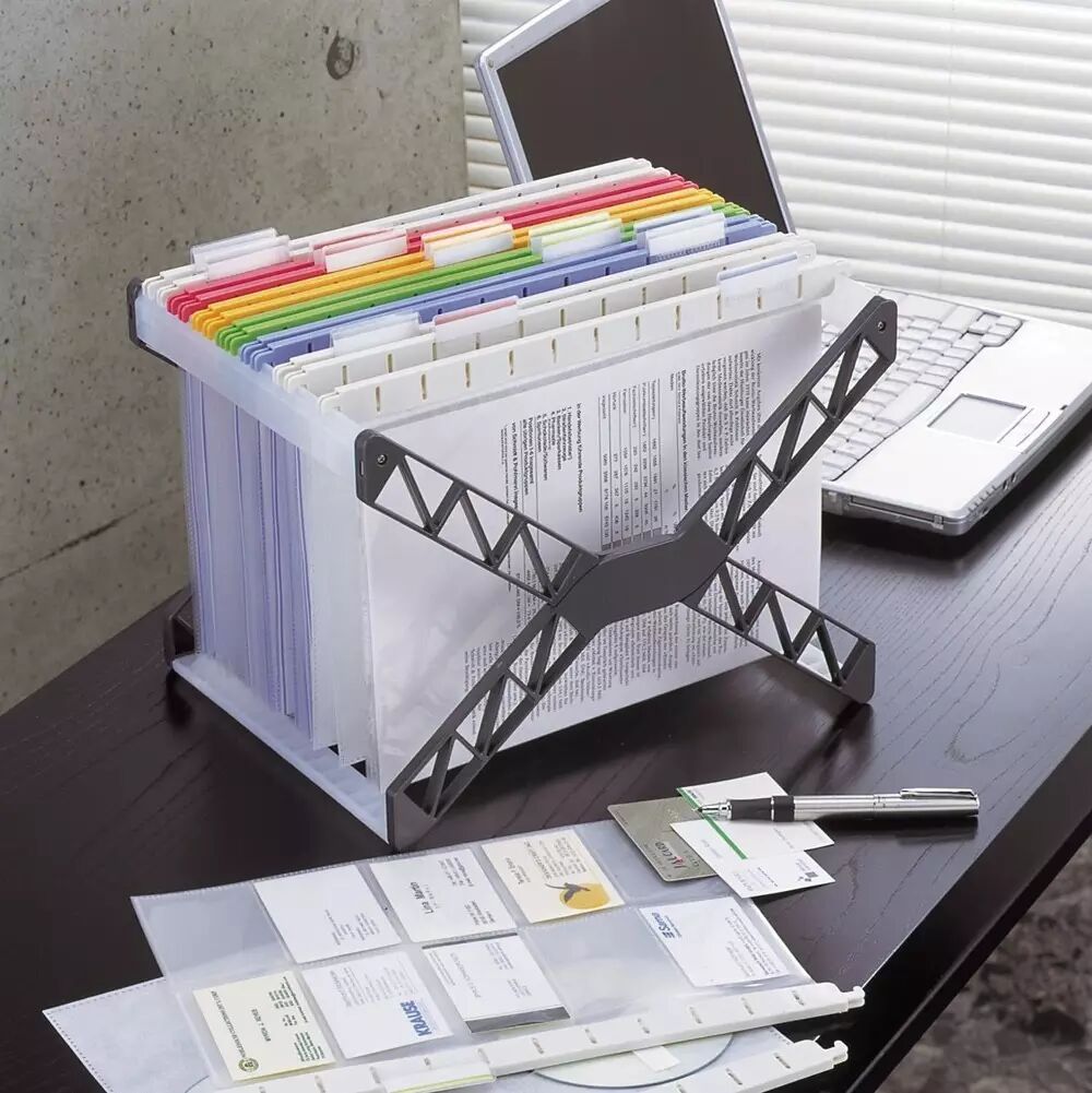 竖着直立收纳文件是解放办公桌空间的有效方法。文件标签朝上便于查找,不会出现想要的文件被压在下面不方便拿取的问题。