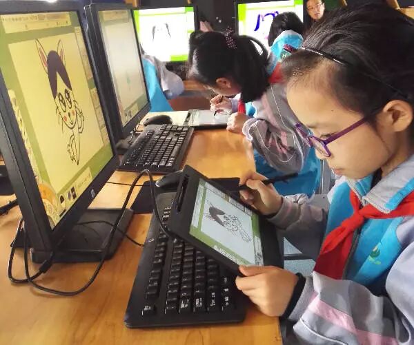 数字化美术互动教室通过实用性较高的交互设备、电脑绘画设备、3D打印机和与之相配套的电脑绘画、动画制作、书法模拟练习等美术软件系统,让学生与教师在舒适的教学环境和充满美术韵味的环境中学习与教学。学生们可以打破传统绘画方式,运用手绘板在强大的电脑软件中尝试新型美术绘画方式进行创作;对于想学习书法的同学,也能运用书法软件,尝试创作各种书法字体练习;同时还能3D打印机,打出自己设计的立体作品。