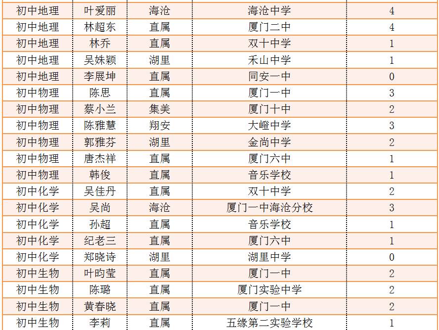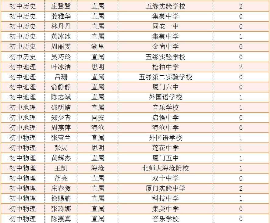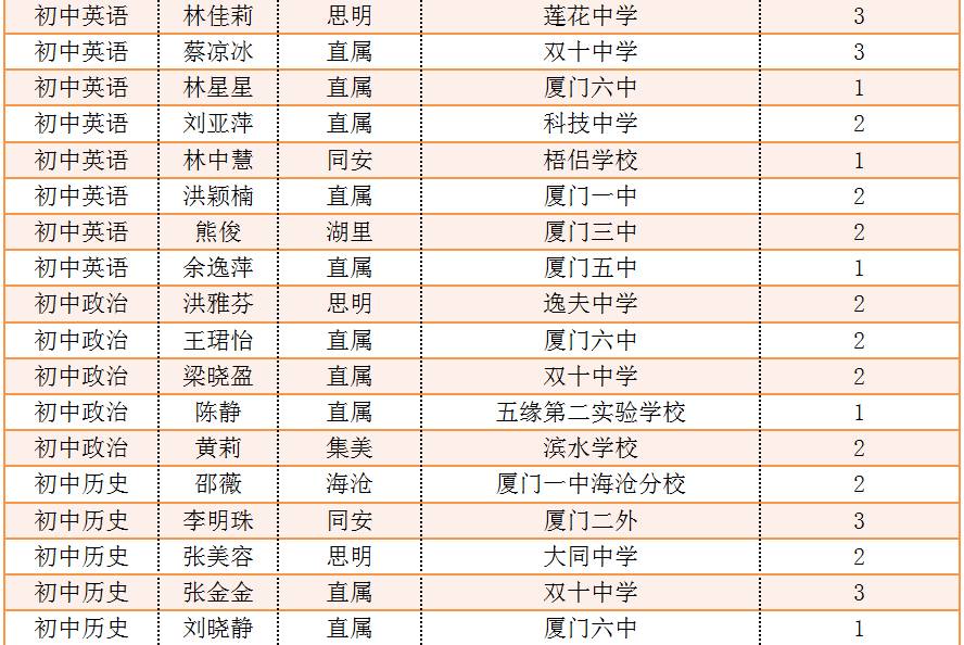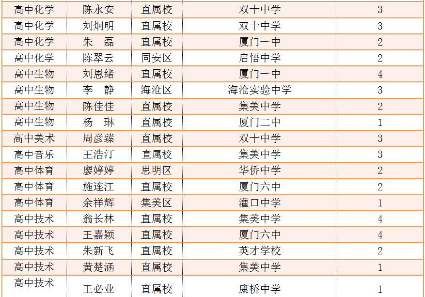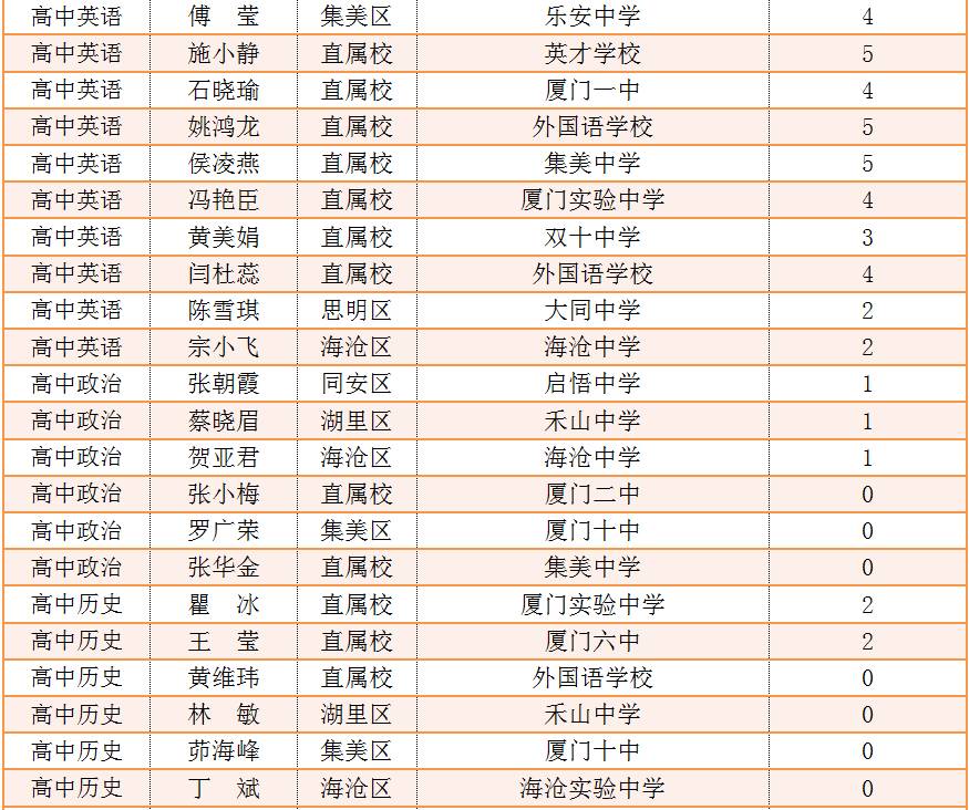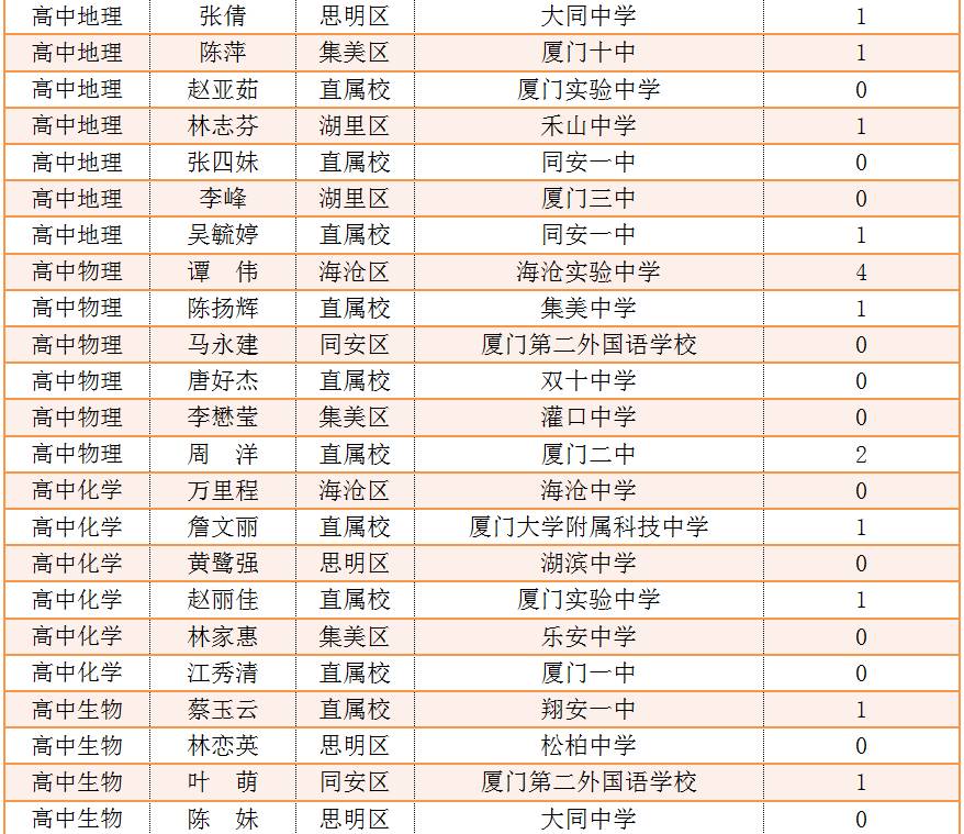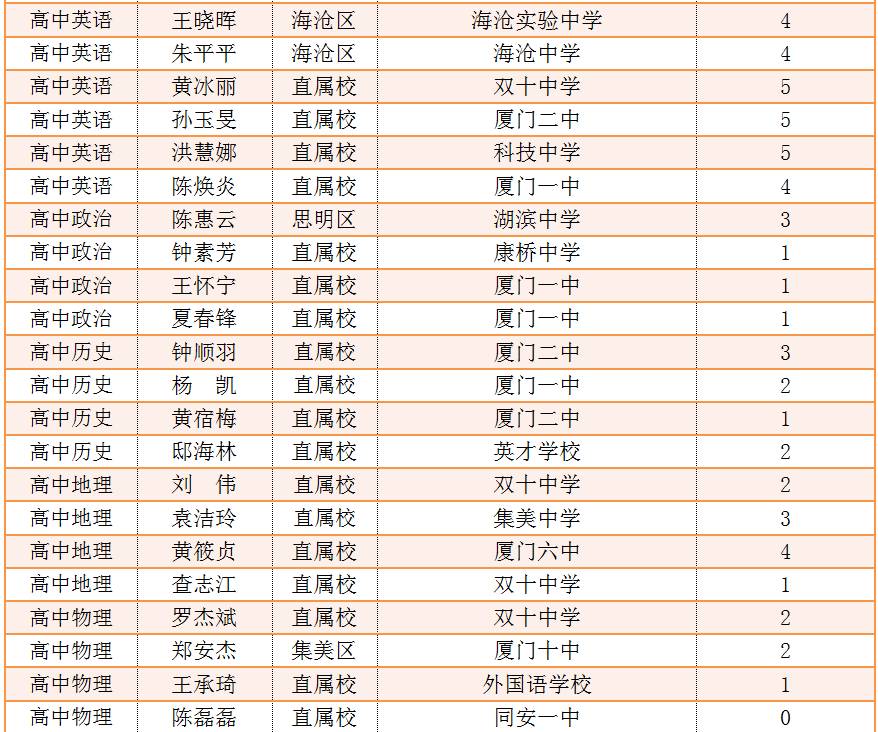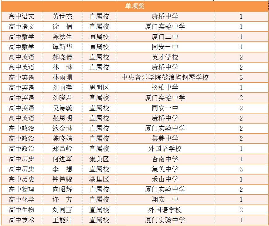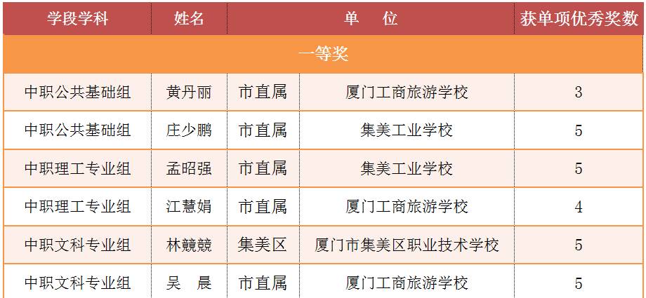 教学基本功比赛一等奖获奖者统计(不含中职)↓↓