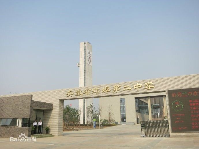 安徽省蚌埠第二中学,始建于1928年,是一所八十年历史的老校。1978年被命名为“安徽省重点中学”,2000年被命名为“安徽省示范性普通高中”。 2001年承办省理科实验班,标志二中的办学水平已位居全省前五位。学校占地30388.59平方米,建筑面积26535平方米,建有教学楼、图书馆、科技馆、天文馆、天象馆、风雨操场、塑胶田径场。全校布局合理、环境安谧、设施完备、富有时代感。