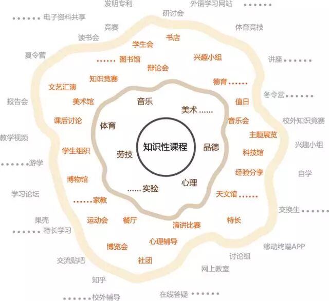 在这样的背景下,授课方式必然会做出相应转变:从传统教室到学习工作室到学习群落到学习俱乐部;从固定教室到走班教学;从基本课堂到第二课堂到隐性课堂。