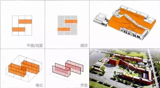 与空间边界对应,它也会有水平向、垂直向和多维度等各种模式,能够相对综合地反映校园公共性的强弱。因为其只保留了界面和路径的关系,给空间的发展和使用的改变预留了巨大的弹性,是应对教学模式变化最有效的手段。
