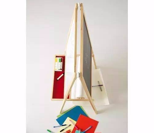 一面是黑板,一面是白板,一边有笔盒,另一边可以挂卷纸,是宜家的经典设计
