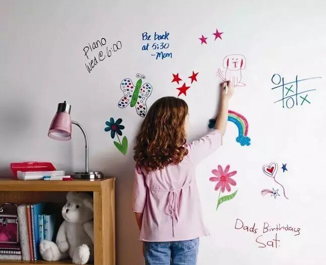 1. 这样的白板方便贴在墙面上,给孩子买各种颜色的白板笔,就可以很方便的开始画画。