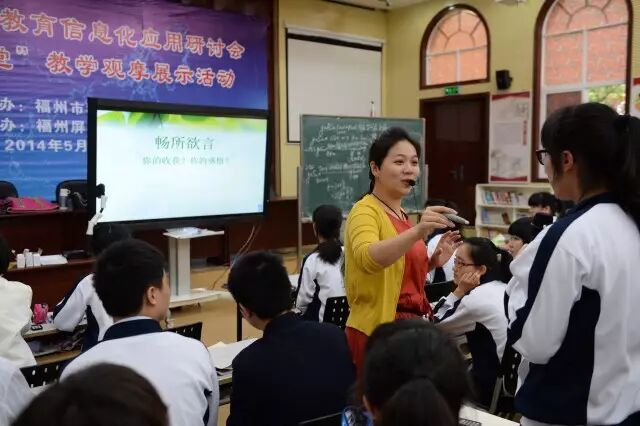 从2013年底首批“智慧教室”系统进入学校,福州屏东中学徐聪校长就定下目标,要借助这套设备,让老师真正实现“以学生为中心”的教学。3年多来,学校通过分层次、递进式的培训,基本实现了全员掌握信息技术能力。如今,作为福建省教育信息化示范学校,屏东中学每间教室都配备了互动电子白板及智慧教室软件,教师只需带着反馈器和手机即可开展互动教学,信息化应用的常态化,使课堂高效互动、即时评价反馈成为可能,课堂教学也更加具有针对性。信息化手段与学科教学的高度融合,也让每一节常态课都呈现出“及时反馈、有效激励、灵活互动”的特点。