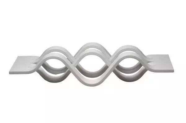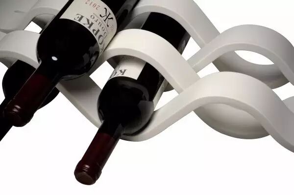 有了概念红酒瓶的设计,是不是也需要一个置酒架呢,设计师将现代数字化技术和传统手工艺结合在一起设计出这款产品,乍一看你可能猜不到它是一个红酒架,因为它看起来就像是交叉响应的浪花,上面两个波浪,下面两个波浪,但就是这交叉设计而成的空间,就让我们可以在其中放入红酒瓶。