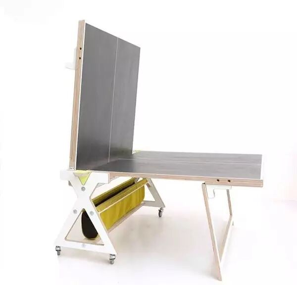 Desk Pin-Po平时可以化作办公室必备的白板,开会讨论、交代各种事项都少不了它。而需要活动筋骨时,也只需要将它往两侧摊开,放下隐藏在白板周围的桌脚,就能马上变身为乒乓球桌。