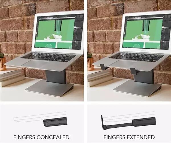而一个好的架子,耐重度当然是首要考虑点,这个笔电堆高机,是用铝制成的,轻巧而且坚固,可以承受最多 5 公斤的重量,不用担心它突然「歪腰」,笔电掉下来。而上面的伸缩臂是采用 3M 的特殊止滑材质,基本上电脑放上去,是不会滑走的,如果不放心,可以将其手臂延长,抓得更牢。