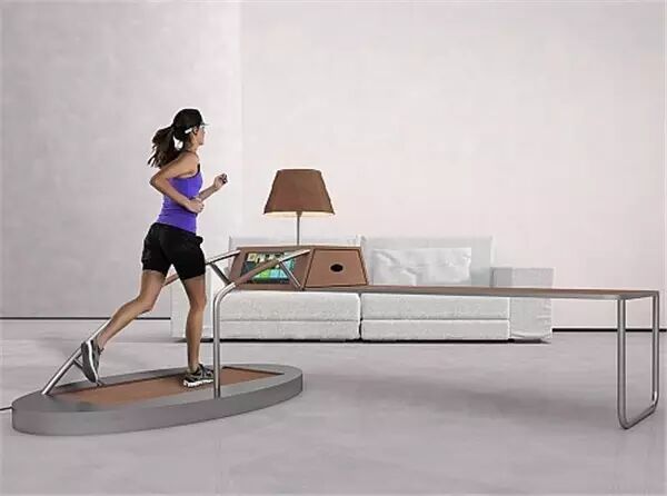 设计师Joe Sardo设计了一款跑步机和写字台合二为一的家具。写字台左侧,带有一个可视液晶屏,屏幕后方则是储物盒,方便大家收纳物品。