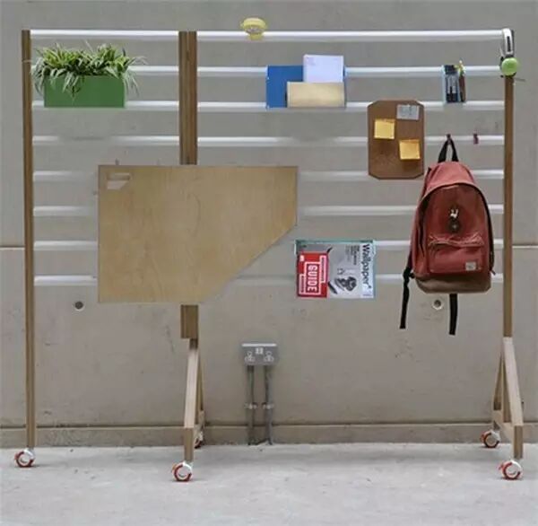 简单的工作台面是可拆卸式的设计,因此将台面拆下来,Your Position就是一个简洁的挂架,每根白色的横架上都设有沟槽,可以根据不同需要挂靠不同的存储或功能组件。