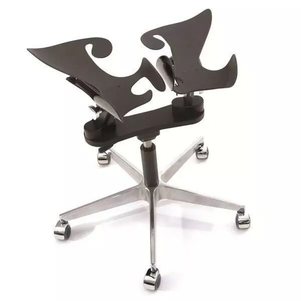 LimbIC抛弃了传统椅子的扶手和靠背,椅面由两个对称的碳纤维材料壳体构成,恰恰是这个有些不稳定的造型设计,可以让人们在坐上去的时候需要不断调整坐姿保持稳定,进而在动态之中缓解掉对身体某一部分的压迫,提高人体的平衡能力和肌肉的韧性与协调性。
