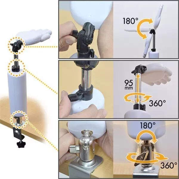 拥有三个关节与可调处的托腮手臂,夹具最宽可张至5.5公分,并支援360度旋转与180度的倾斜,以及9.5公分的伸缩幅度,让你能够轻易调整到最适合自己的角度与高度。