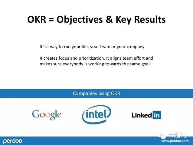 后来,随着Linkedin、Twitter、Sears、Zynga等公司相继开始用,OKRs在硅谷变的盛行起来。现在国内也有越来越多的创业企业开始用OKR了,也许在不久的将来就会遍地开花。