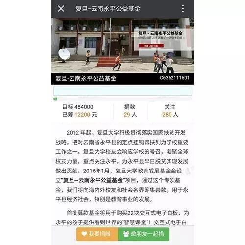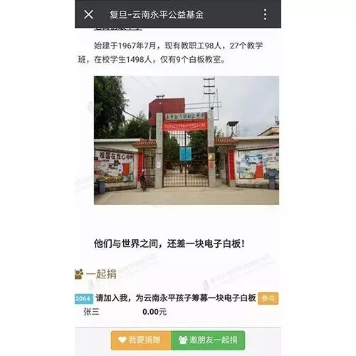首批募款基金,希望购买22块交互式电子白板,为永平的孩子提供看到世界的“智慧课堂”。首先用于两所中小学的课堂堂教学,如果目标得以实现,将有8000名永平学生因此受益 。