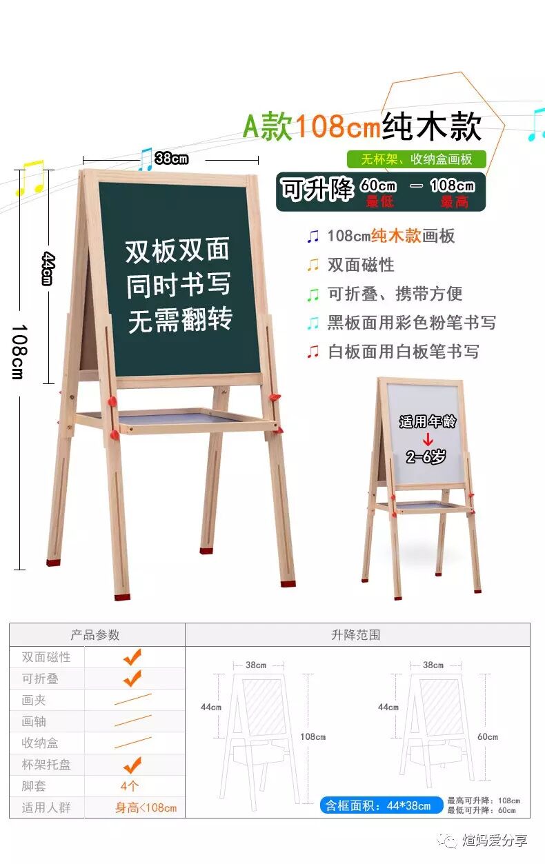 双面磁力黑板,进口原木框,可随意调节高度,最高108CM,有赠送,