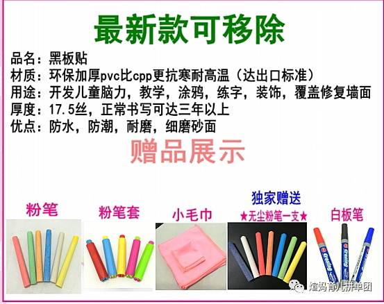 黑白绿三色,环保,无尘,带背胶,可直接粘贴在任何墙面上,可移除,用板擦,湿布擦拭都可以,多种规格可选,12.9元起(详情看下面图文报价)可加配装饰贴,更漂亮。