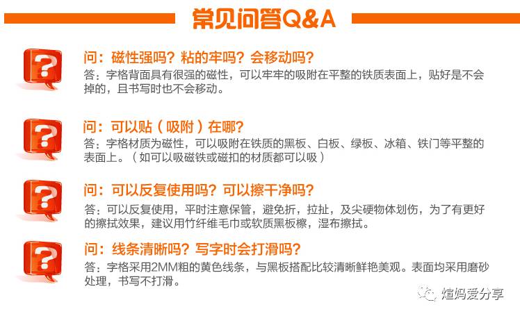 带磁力,无背胶,可贴在任何有磁力的平面,如黑板白板冰箱铁门等,若想固定在普通墙面上需要双面胶,分带格和不带格两种,不同规格,可用板擦,湿布,可水冲,具体看图文介绍报价。