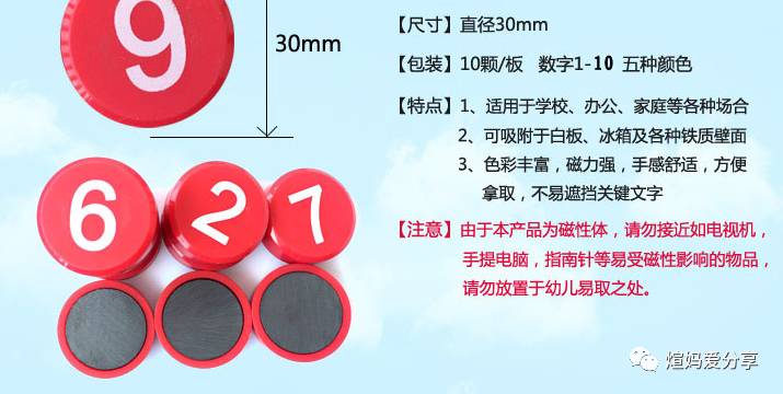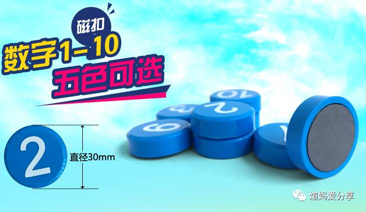 数字磁力扣,蓝紫橙红绿五色,可做数学也可做普通磁力扣用,每组10.8元。